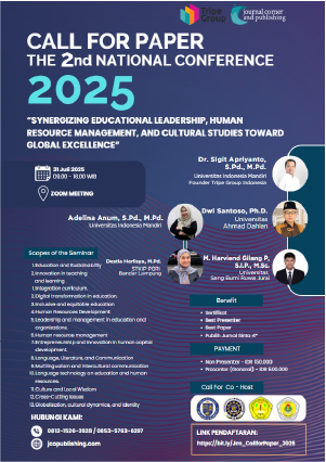 Jurnal Corner of Education, Linguistics, and Literature invites you to submit your paper for the Special Issue in July 2025 with the theme "Synergizing Educational Leadership, Human Resource Management, and Cultural Studies Toward Global Excellence".
